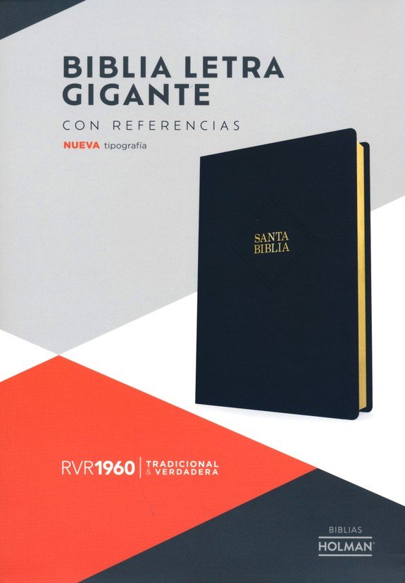 BIBLIA LETRA GIGANTECON REFERENCIAS Nueva tipografíaEl diseño amplio y hermoso de esta Biblia es ideal para la lectura personal, la enseñanza y la predicación pública de la Palabra.Las referencias y ayudas adicionales son el complemento perfecto al texto de la Reina-Valera 1960, la versión preferida en español. Con esta Biblia podrás llevar la Palabra de Dios contigo y atesorarla en tu corazón.Características:•Nueva tipografía elegante y fácil de leer• Referencias• Cómo leer y entender la Biblia•Concordancia•Panorama histórico de la Biblia•Calendario anual• Buenas nuevas de salvación• Palabras de Cristo en rojo•Armonía de los evangelios• Síntesis de cada libro• Mapas a todo color• Palabras de aliento para tu caminar con DiosGIANT PRINT BIBLE WITH REFERENCESNew typographyThe large and beautiful design of this Bible is ideal for personal reading, teaching and public preaching of the Word.The references and additional tools are the perfect complement to the Reina Valera 1960 text, the most preferred version in Spanish. With this Bible you will be able to take the Word with you and treasure it in your heart.Features:• New elegant and easy to read typography.• References• How to read and understand the Bible• Concordance• Overview of the Bible’s history• Annual calendar• The Good News of Salvation• Words of Christ in red• Harmony of the Gospels• Synthesis of each book• Full-color maps• Words of encouragement for your walk with God