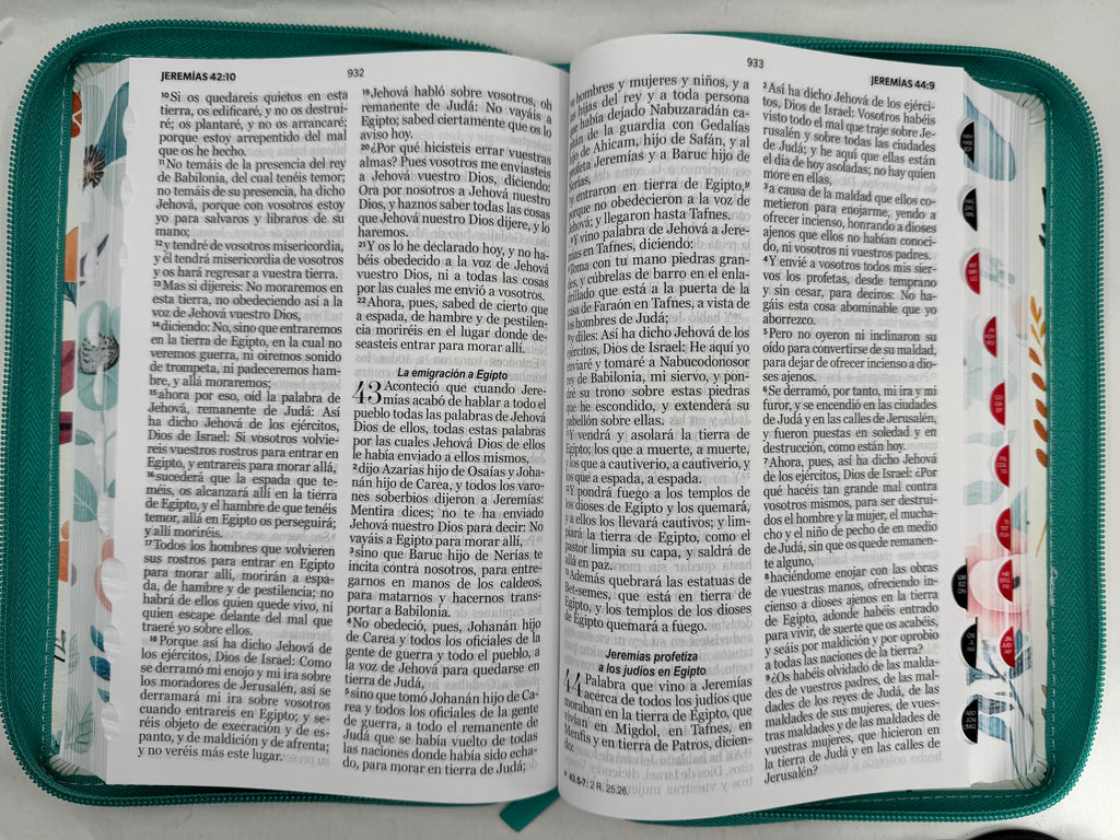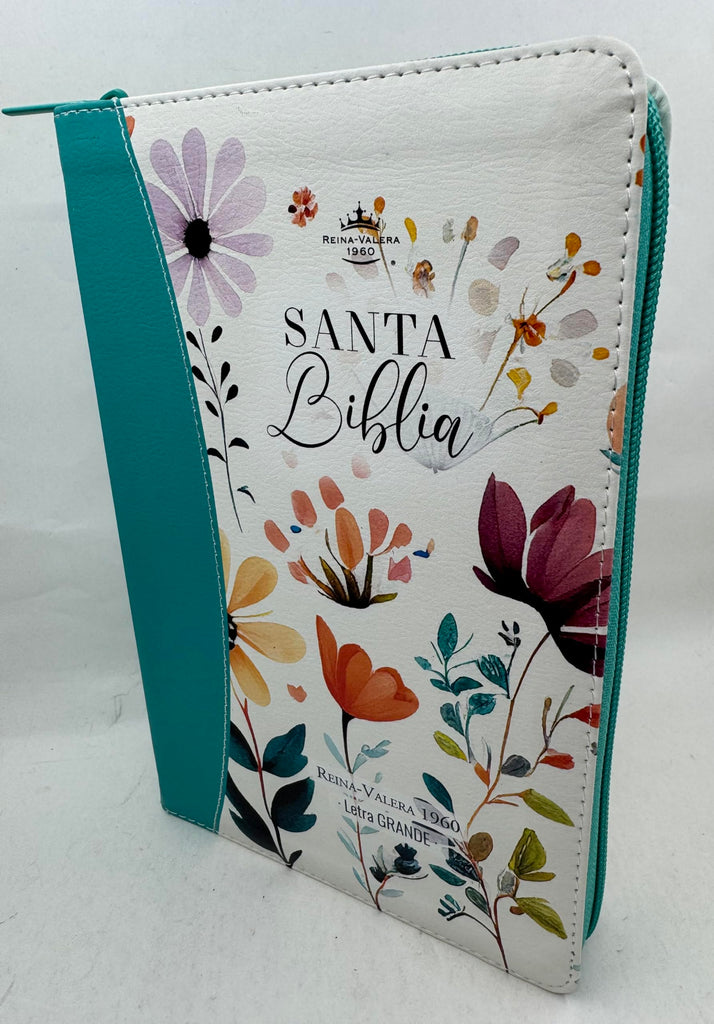 Biblia RVR 1960 Letra GrandeTamaño Manual Jardín Turquesa Cierre Índice Símil Piel