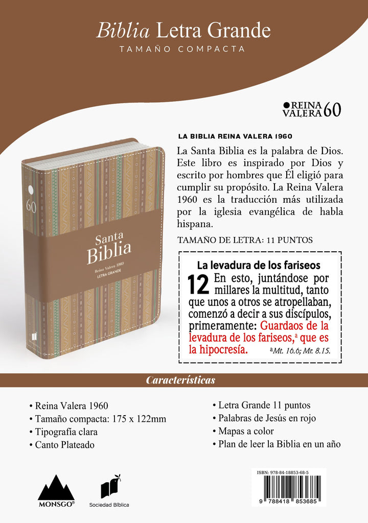 - Tamaño compacto, letra grande, en una Biblia fácil de llevar