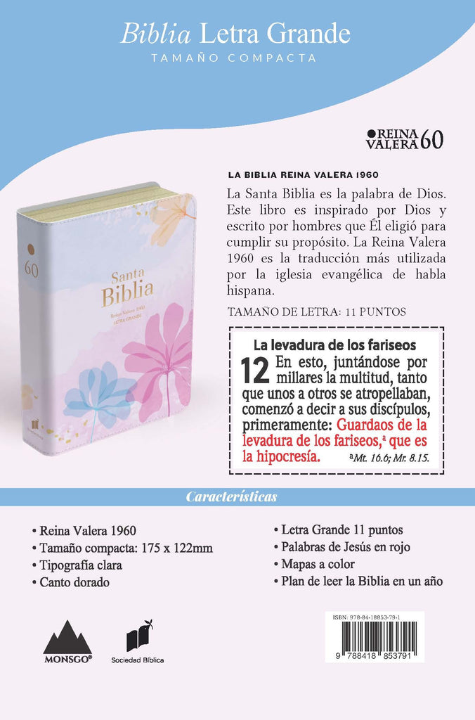 - Tamaño compacto, letra grande, en una Biblia fácil de llevar