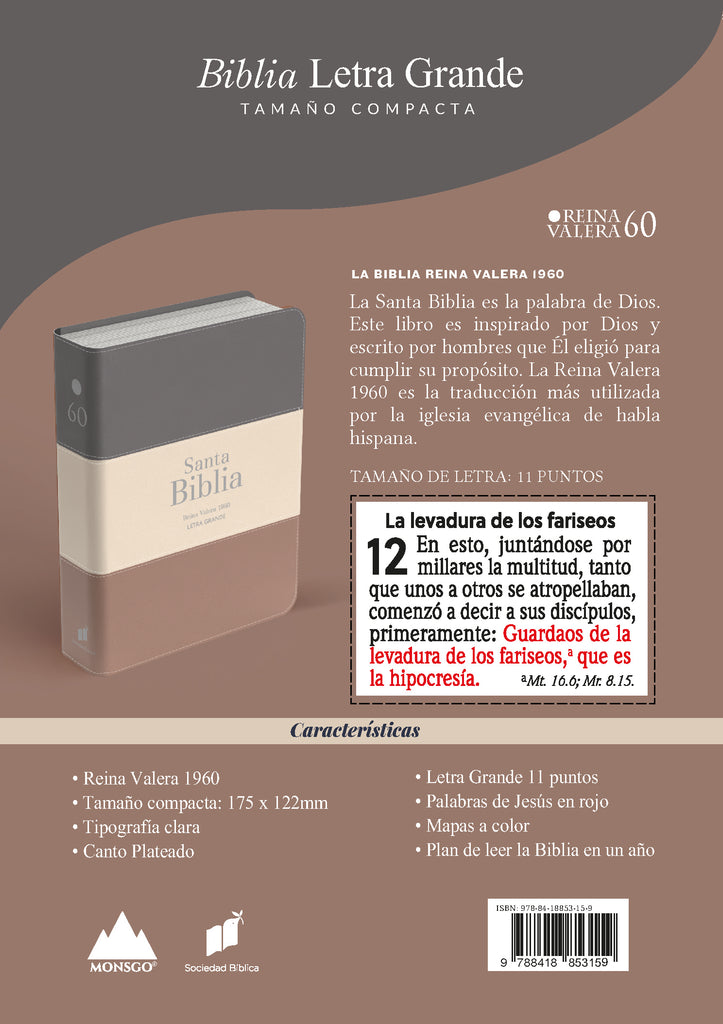 Biblia RVR 1960 Compacta Letra Grande 11 puntos Símil Piel Gris Beige Marrón