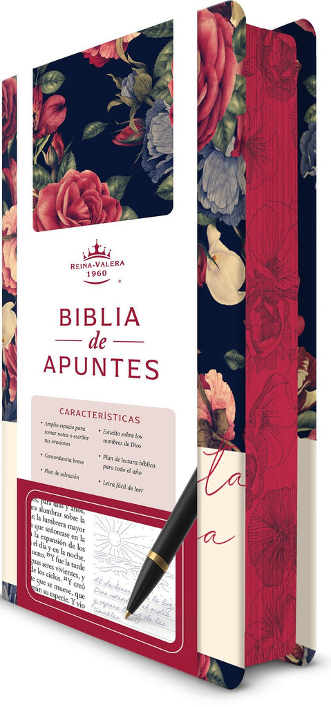 Biblia RVR 1960 de Apuntes Tapa Dura, Azul Oscuro con Flores (Edición Cantos Pintados)