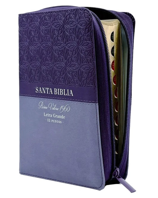 Biblia RVR 1960 Letra Grande Tamaño Manual Bifloral Lila Oscuro Símil Piel
