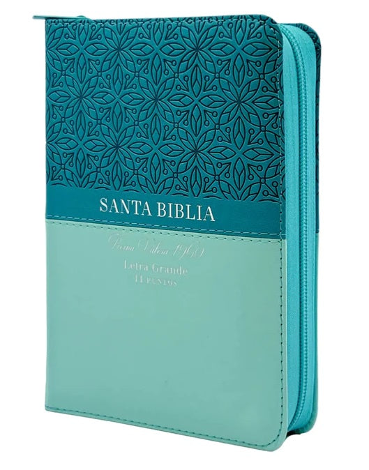 Biblia RVR 1960 Letra Grande Tamaño Manual Bifloral Turquesa Símil Piel