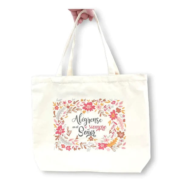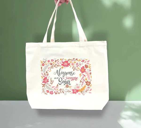 Bolso de algodón Grande con cierre y versículo a todo color. Tamaño 45Lx35Hx11