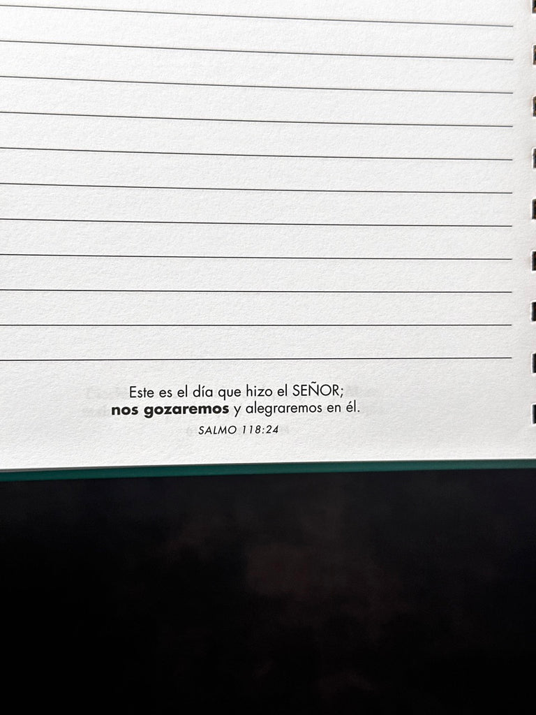 Librera de anillas Tapa Dura. Con efectos en la portada. Versículos en el interior. 192 páginas. Tamaño: 8.4” x 6.4” x 1” (213 x 163 x 25mm)