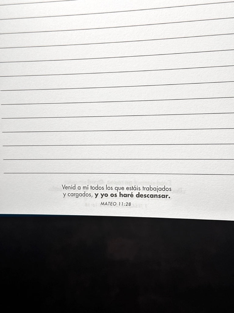 Librera de anillas Tapa Dura. Con efectos en la portada. Versículos en el interior. 192 páginas. Tamaño: 8.4” x 6.4” x 1” (213 x 163 x 25mm)
