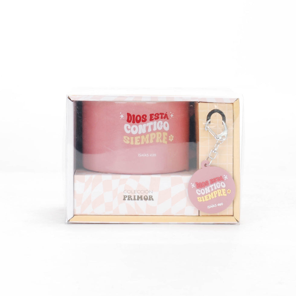 Pack Taza 12 OZ + Llavero de Caucho Colección Primor Dios está Contigo Siempre