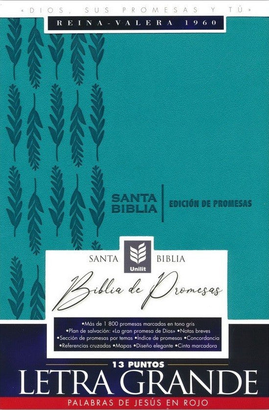Biblia RVR 1960 de Promesas Letra Grande Turquesa Símil Piel
